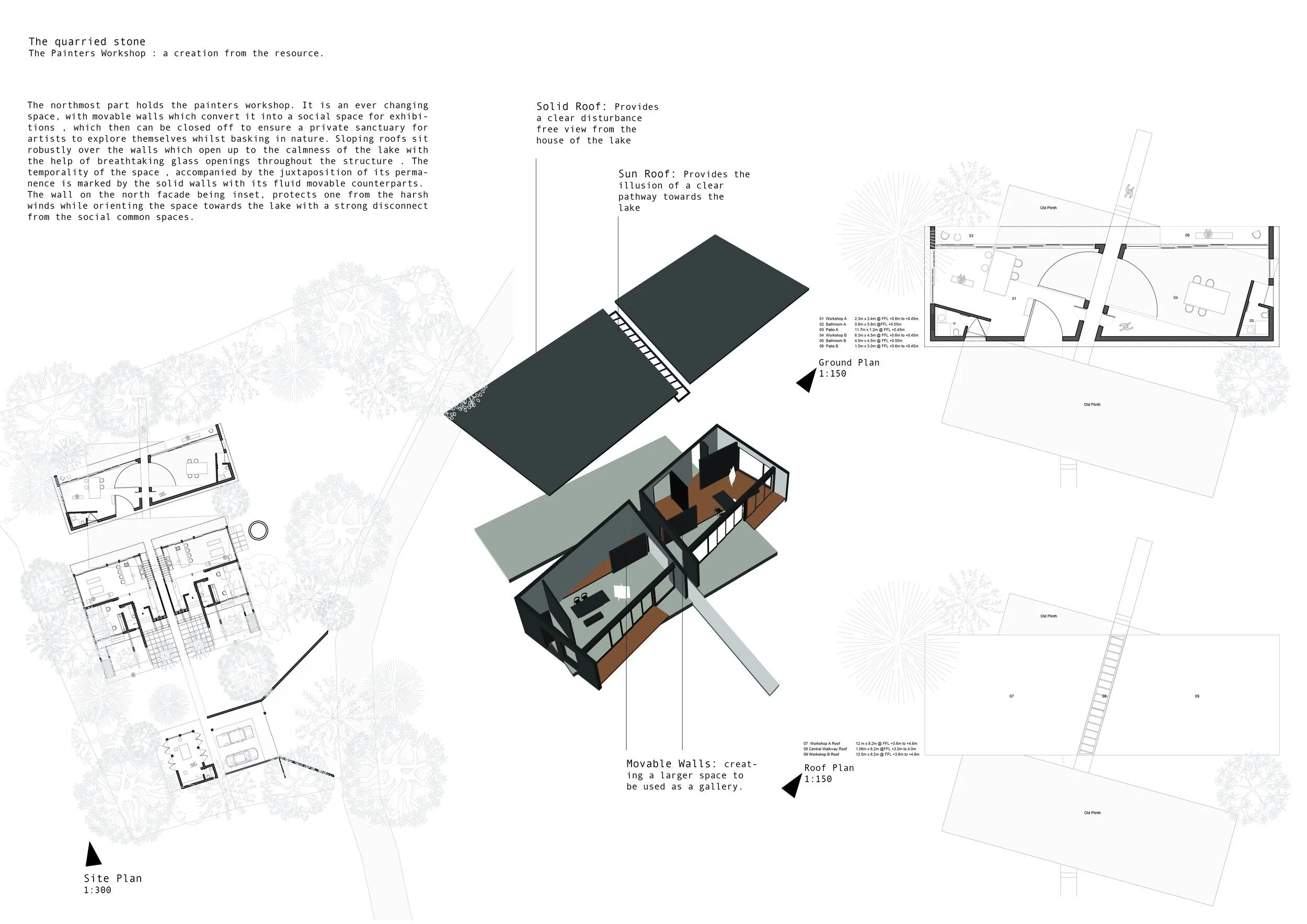The project was submitted as a competition entry for Buildner.com. The project brief was to design a house by the lake in Latvia for 2 resident painters and their families, a workspace for them keeping in mind the strong natural context of the surroundings.
